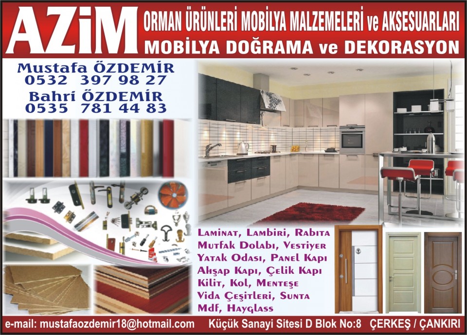 Azim Mobilya Dekorasyon ve Orman Ürünleri Ayrıntılı Bilgi İçin Tıklayınız