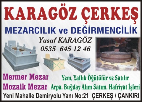 Karagöz Çerkeş Mezarcılık - Değirmencilik Ayrıntılı Bilgi İçin Tıklayınız
