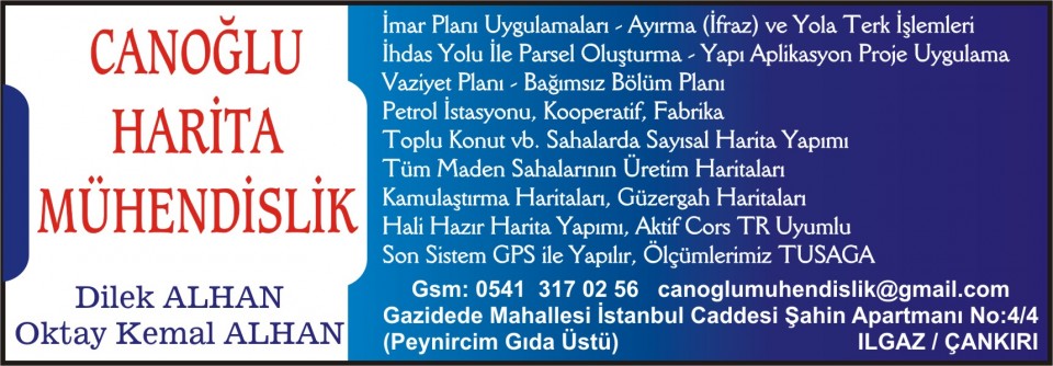 | Canoğlu Harita Mühendislik | 0541 | 317 02 56 |