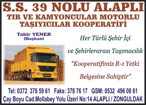 S.S. 39 Nolu Alaplı Tır ve Kamyoncular Kooperatifi Ayrıntılı Bilgi İçin Tıklayınız |