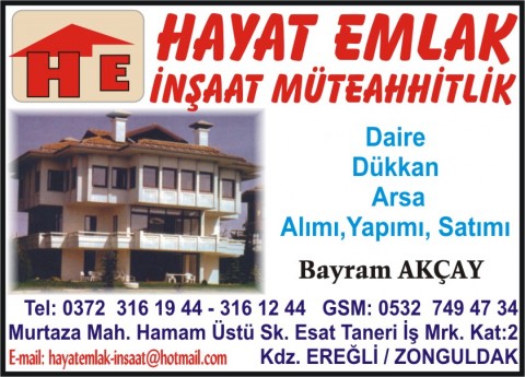 Hayat Emlak İnşaat Müteahhitlik Ayrıntılı Bilgi İçin Tıklayınız