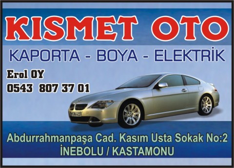 KISMET OTO KAPORTA BOYA ELEKTRİK Erol OY 0543 807 37 01 Andurrahmanpaşa Caddesi Kasım Usta Sokak No:2 İNEBOLU |