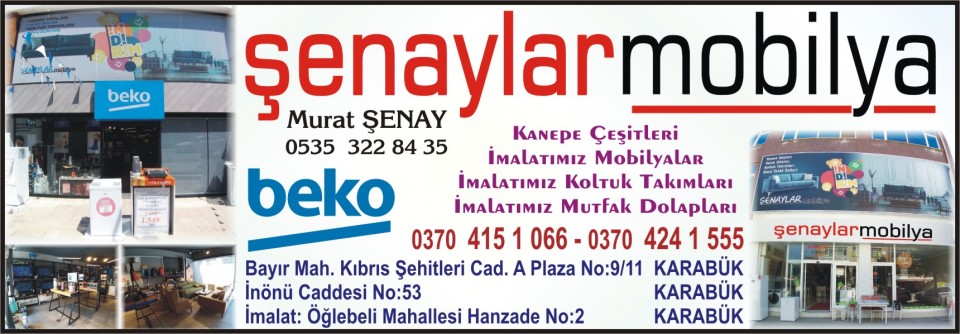 ŞENAYLAR MOBİLYA Murat ŞENAY 0530 785 98 78 Tel: 415 10 66 - 725 15 66 İnönü Caddesi No:53 KARABÜK |