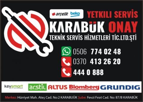 KARABÜK ONAY TEKNİK SERVİS HİZMETLERİ LTD.ŞTİ. Hüseyin ONKARDEŞLER 0506 774 02 48 Bağ-Essan Sanayi Sitesi Hürriyet Mahallesi Ateş Caddesi No:2 KARABÜK |
