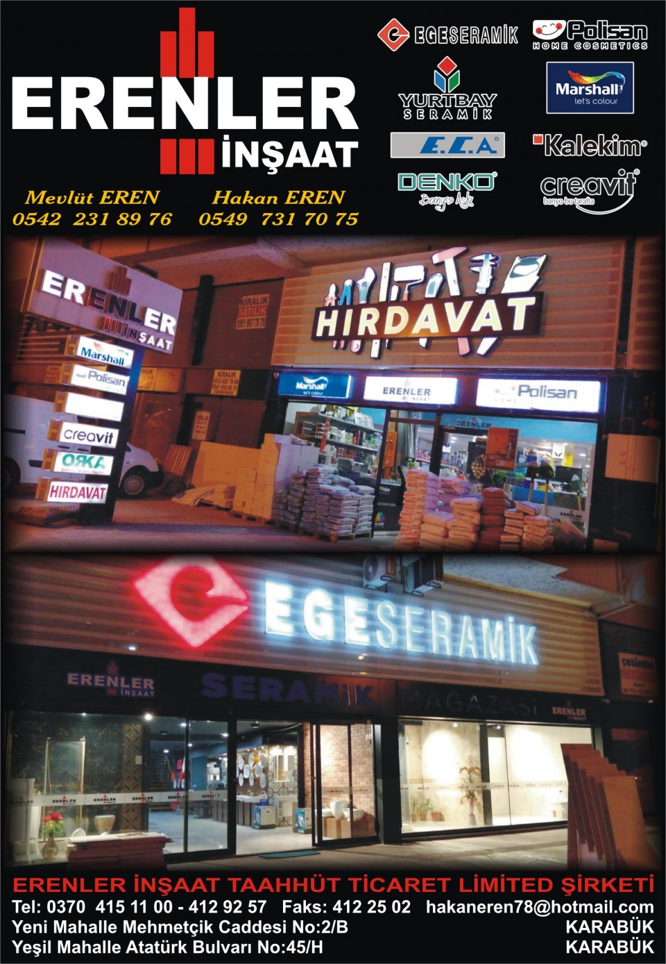 Mevlüt EREN & Hakan EREN   Tel: 415 11 00
