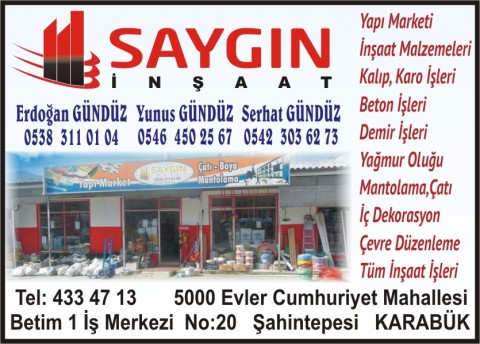 SAYGIN İNŞAAT Ayrıntılı Bilgi İçin Tıklayınız
