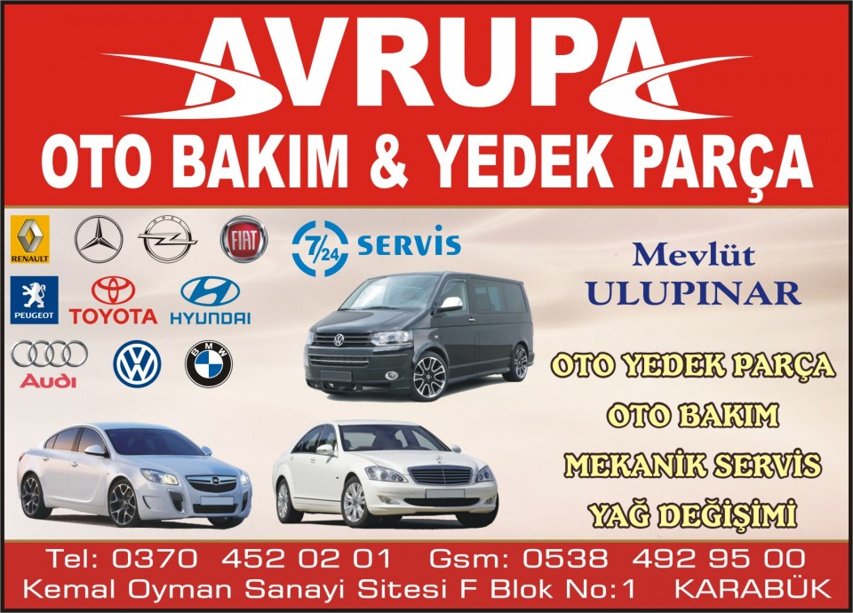 | Avrupa Oto Bakım & Yedek Parça | 0370 | 452 02 01 |