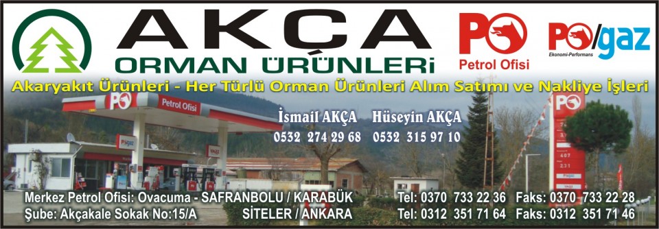 AKÇA ORMAN ÜRÜNLERİ Petrol Ofisi İsmail & Hüseyin AKÇA Tel: 733 22 36 |