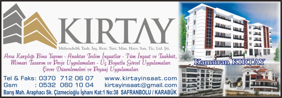 Kırtay Mühendislik Taah.İnşaat Ltd.Şti. 0370 712 06 07