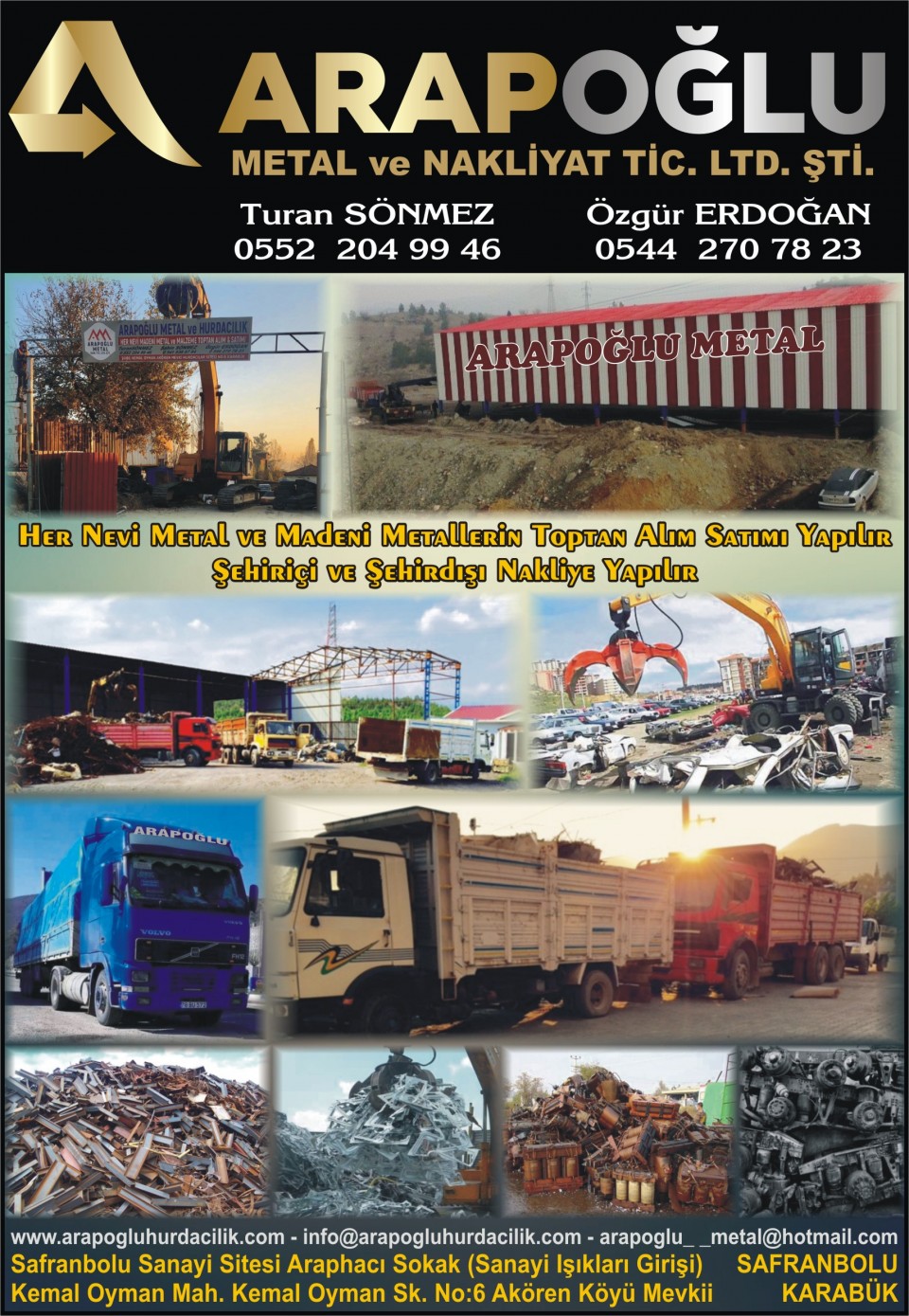 | Arapoğlu Metal Nakliyat Tic.Ltd.Şti. | 0552 | 204 99 46 |