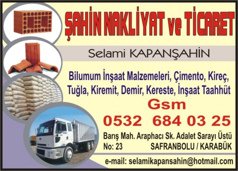ŞAHİN NAKLİYAT ve TİCARET Ayrıntılı Bilgi İçin Tıklayınız