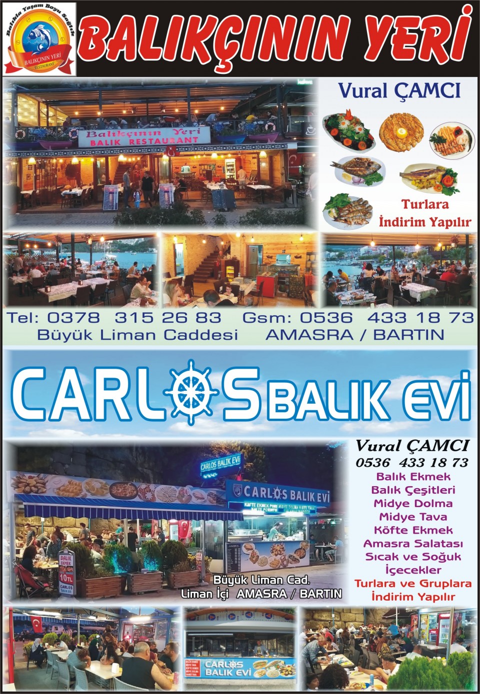 | Carlos Balık Evi | 0536 | 433 18 73 |