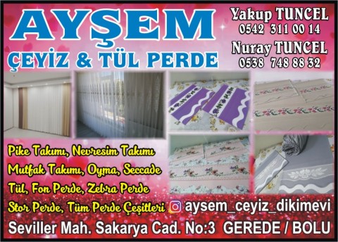 Ayşem Çeyiz ve Dikim Evi Ayrıntılı Bilgi İçin Tıklayınız |