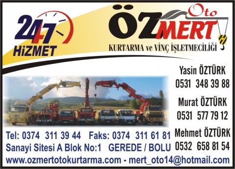 | Özmert Oto Kurtarma Vinç İşletmeciliği | 0374 | 311 39 44 |