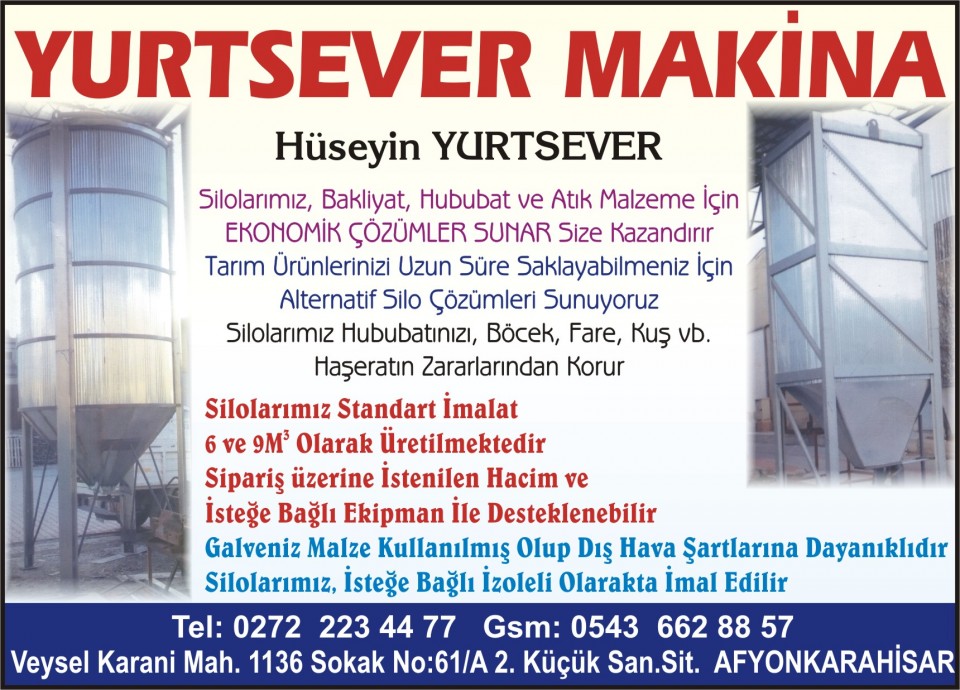 | Yurtsever Makine | 0272 | 223 44 77 |