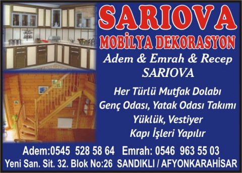 Sarıova Mobilya Dekorasyon Ayrıntılı Bilgi İçin Tıklayınız |